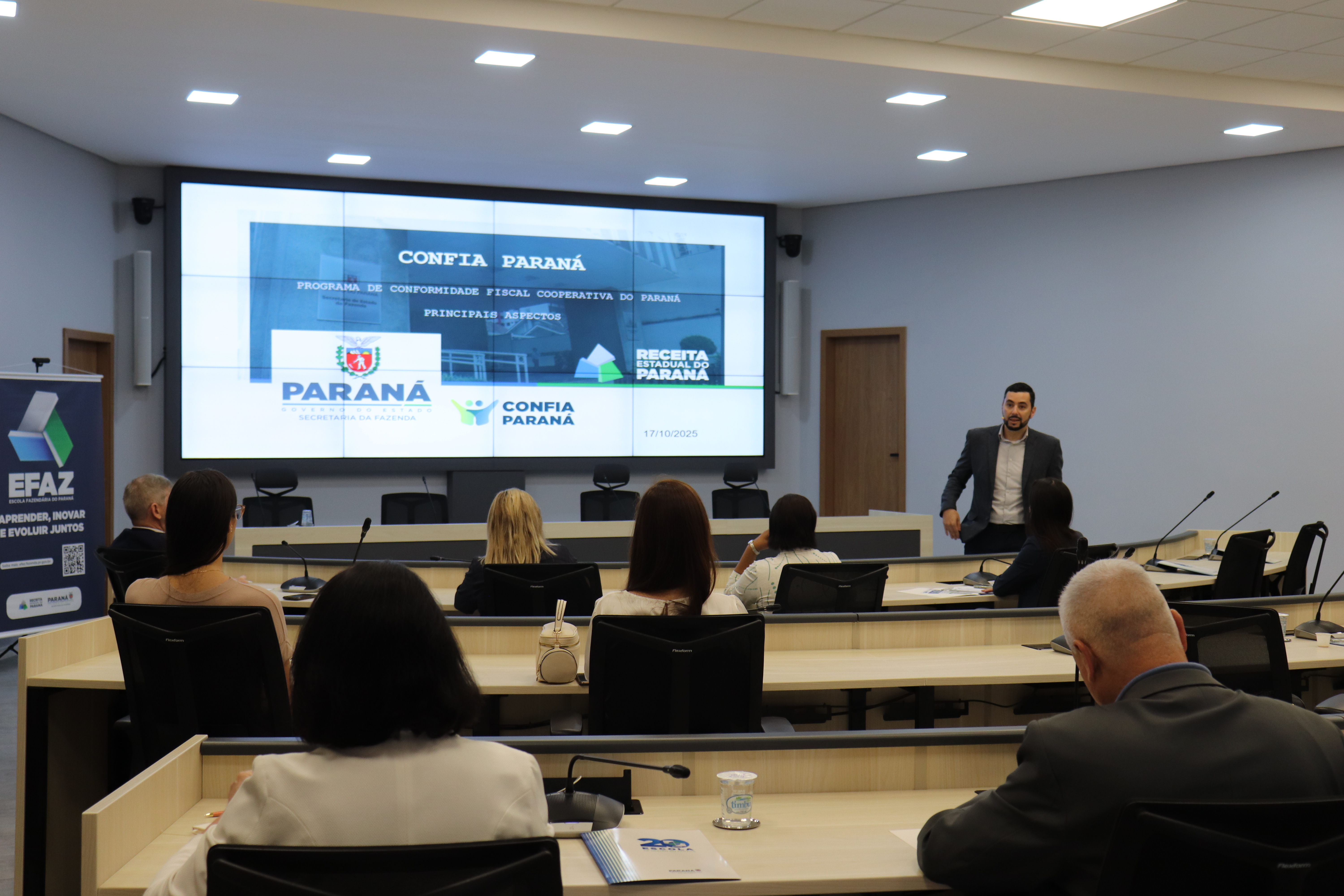 Em um encontro marcado pelo diálogo e pela troca de experiências, a Receita Estadual do Paraná promoveu, nesta sexta-feira (17), uma capacitação sobre o Programa de Conformidade Fiscal do Estado (Confia Paraná), voltada aos profissionais da contabilidade. A ação, realizada em parceria com a Escola Fazendária (EFAZ), foi mais do que uma formação técnica, trata-se de uma oportunidade para aproximar o Fisco e quem está na linha de frente do cumprimento das obrigações fiscais.